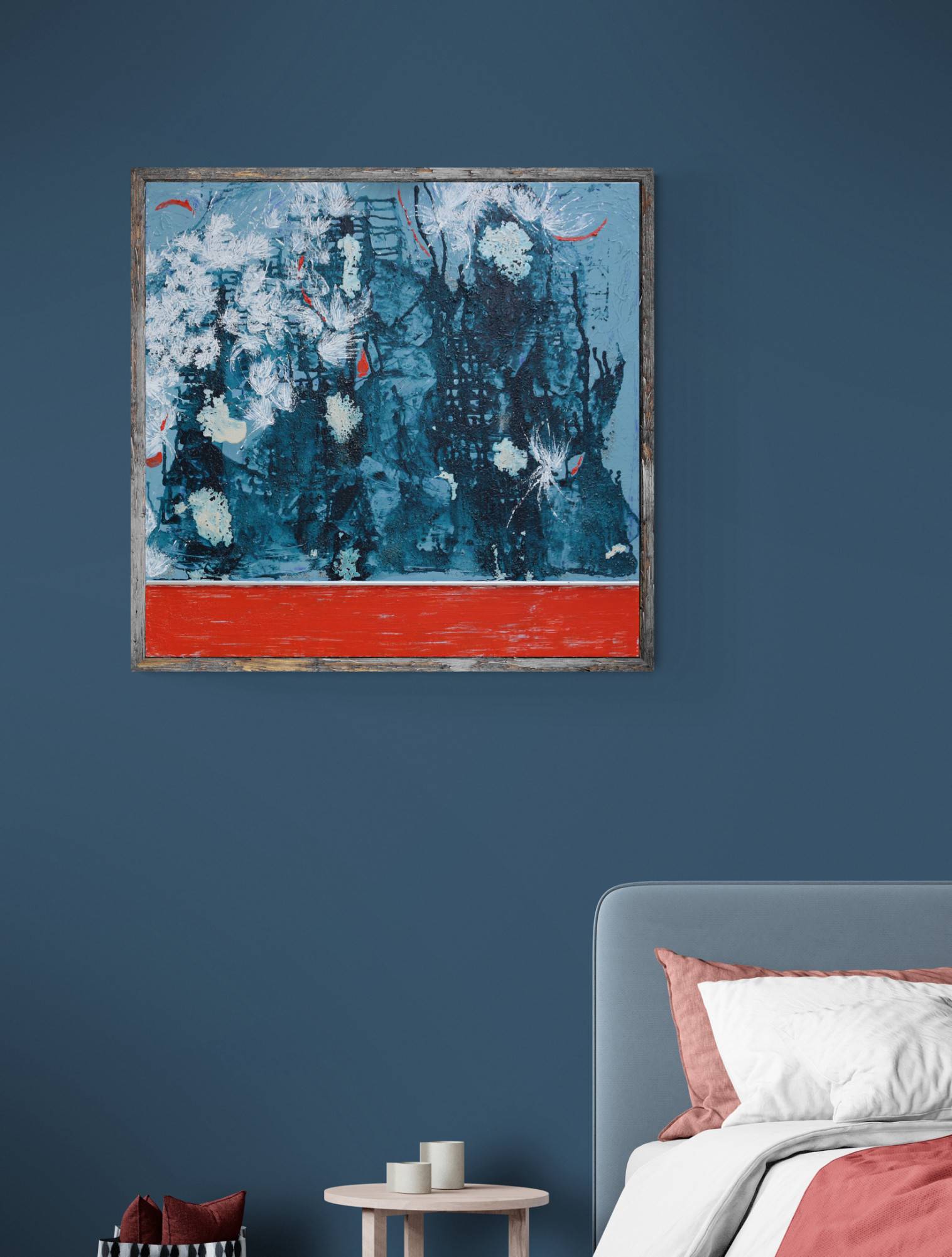 - Acrylic and mixed media on canvas