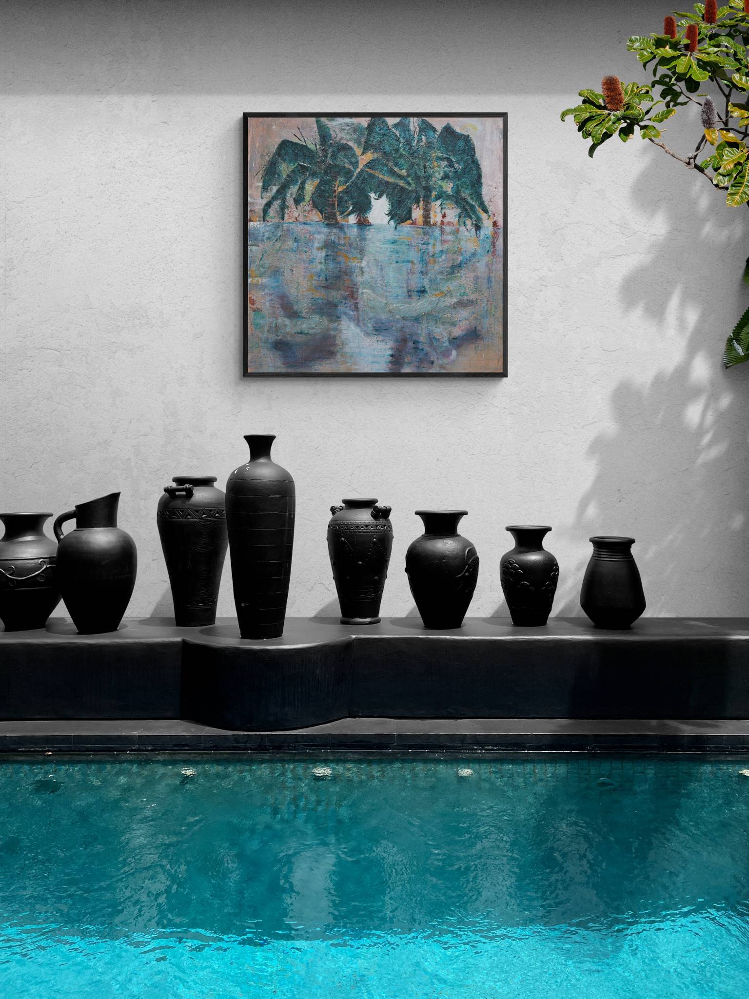 I love trees, and palm trees sing to me- this imagined seascape was painted to dream and feel the soft breeze of the ocean at sunset.