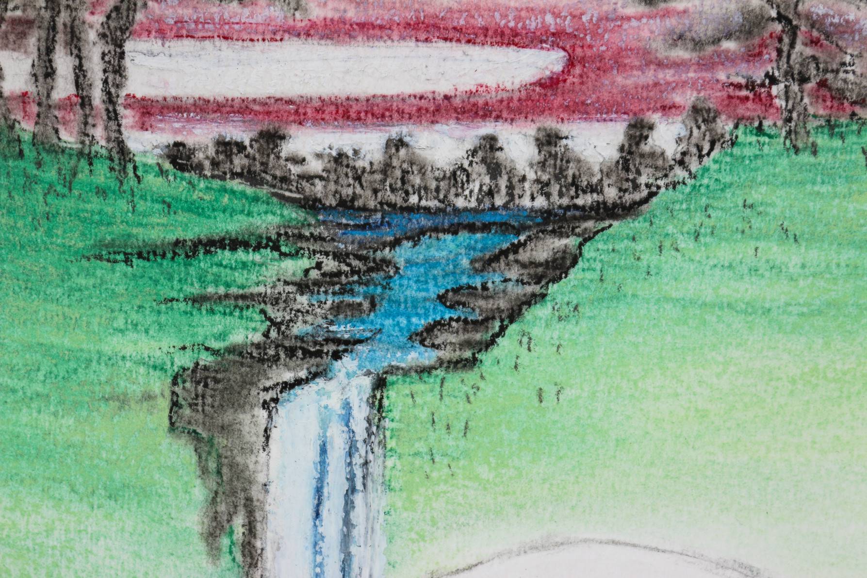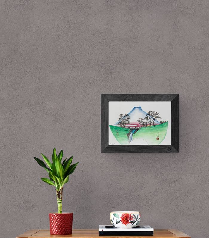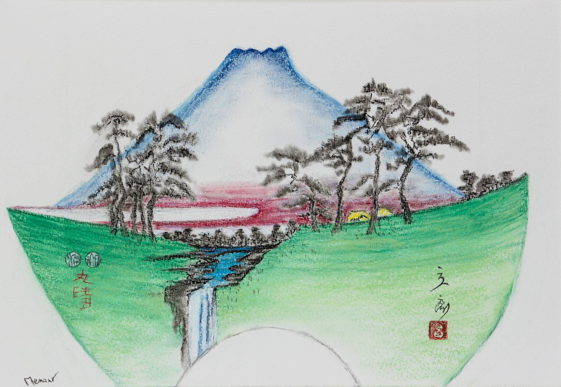 My own study of an amazing Hiroshige's block print of Fuji San and the Otodome fall. It was designed to male paper fans!